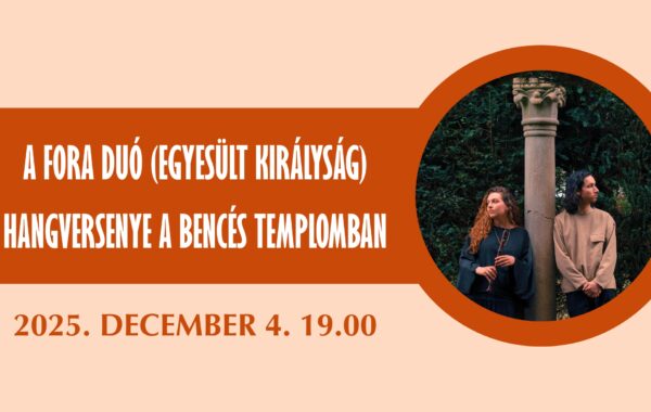 A Fora duó (Egyesült Királyság) hangversenye a Loyolai Szent Ignác bencés templomban 2025. december 4-én 19.00-kor Olivia Petryszak: furulya Matthew