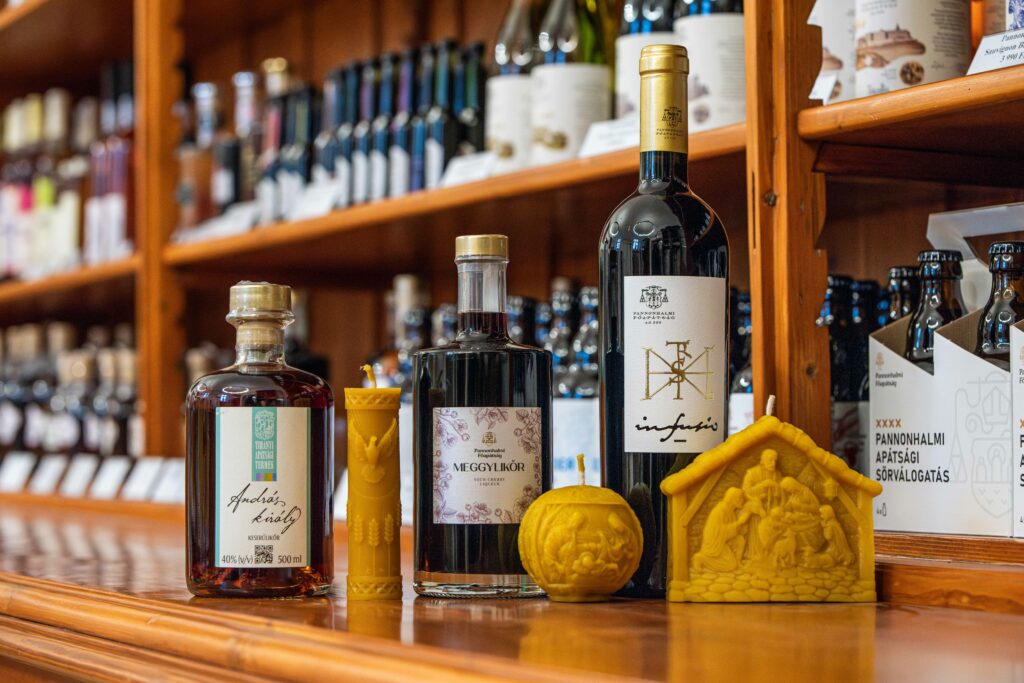 Az eredeti 18. és 19. századi bútorok polcain találhatnak apátsági borokat, likőröket, teákat és méhviaszgyertyákat emellett könyveket és kozmetikumokat, valamint csokoládékat, szörpöket.