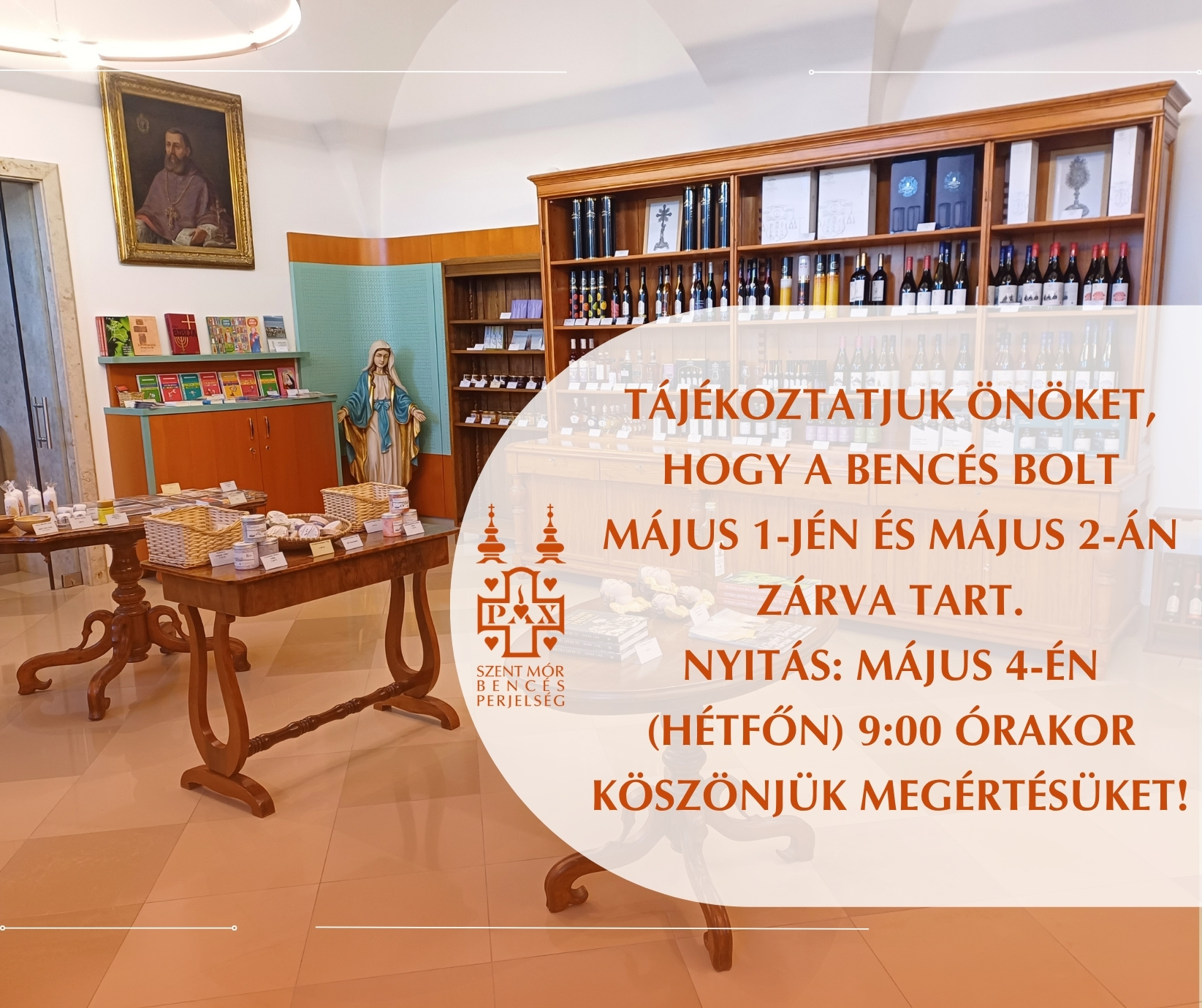 Ezúton értesítjük Önöket, hogy a Bencés Bolt május 1-jén és 2-án zárva tart.