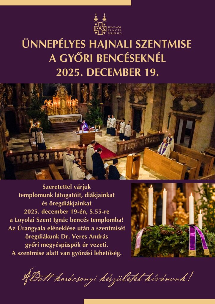 Szeretettel várjuk templomunk látogatóit, diákjainkat és öregdiákjainkat 2025. december 19-én, 5.55-re a Loyolai Szent Ignác bencés templomba!